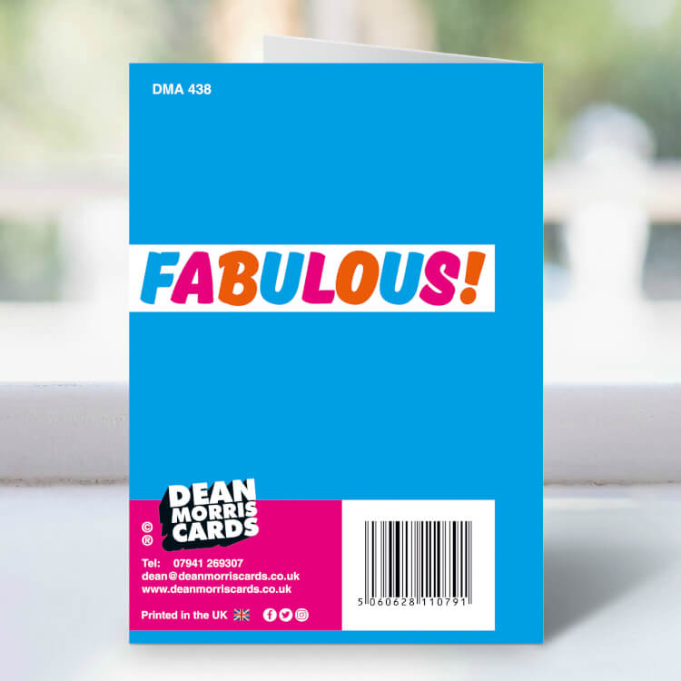 A Fathers Day card with a photo of an old man in sunglasses and an hawaiian shirt holding a cocktail. White text in a black bar across the middle of the card reads Daddy Cool.
