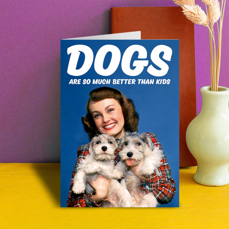 You're either in the dog camp or the kid camp and I'm definitely the doggy camp so this might be the perfect card to send to all my friends that think the same.
