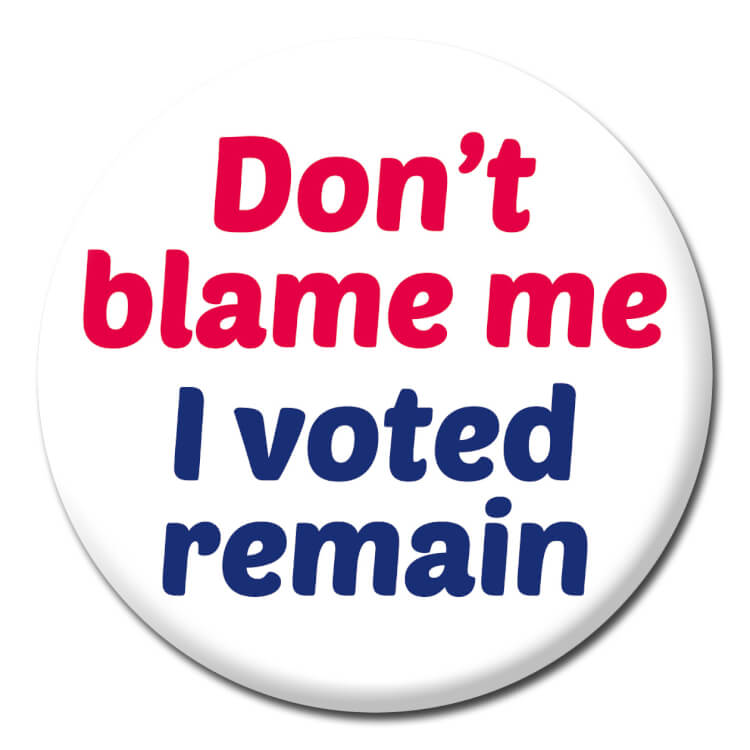 Were you the 52% or the 48% ? If you're the latter here is a badge for you to happily wear out and about and perfect to wear round Europe to show solidarity.