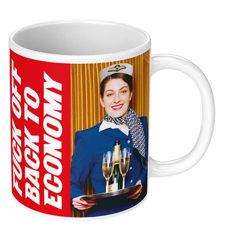 You better be nice to your air hostess or she may take back your complimentary glass of champagne and tell you to “fuck off back to economy”. This cheeky mug is the perfect gift for the high flyers in your life or those with first-class taste and economy pockets.