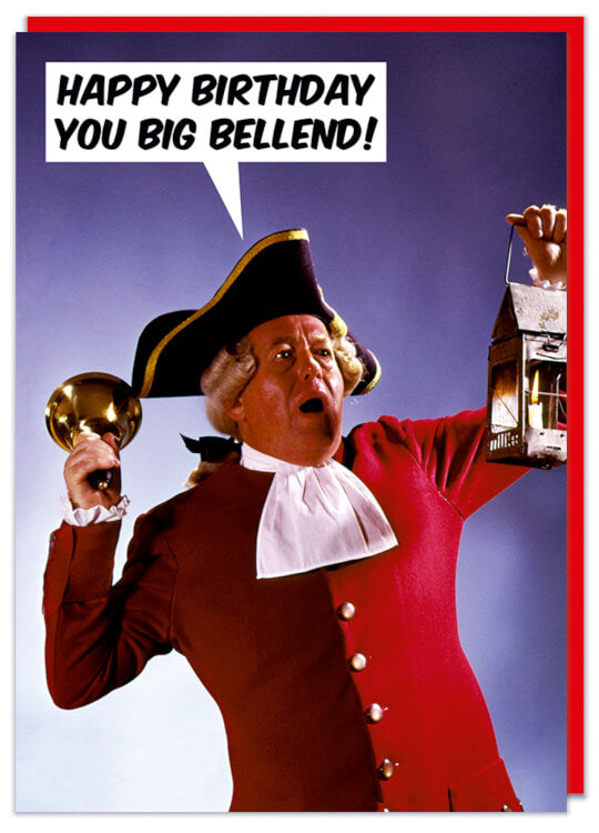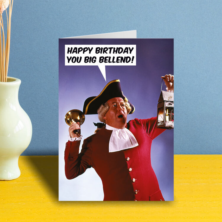 Well the guy has a bell and he's shouting so I guess this would be perfect for the bellend in your life. They might even be a campanologist or town crier if you lucky and then this is definitely the perfect card for them. Nice and specific market there.