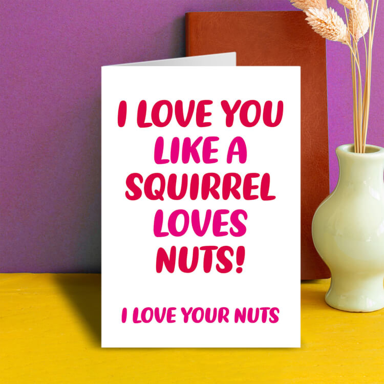 We all know how much those pesky squirrels love their nuts. Well now you can give him a perfect Valentine's day card saying how much you love him and his nuts. Just don't bury them in the garden, he might mis them too much.