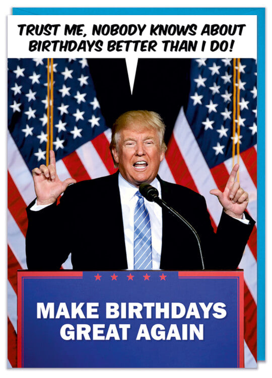 Donald Trump is lying, nobody knows more about birthdays than you and you know the perfect person from who this card would be ideal. You can make their birthday great again!