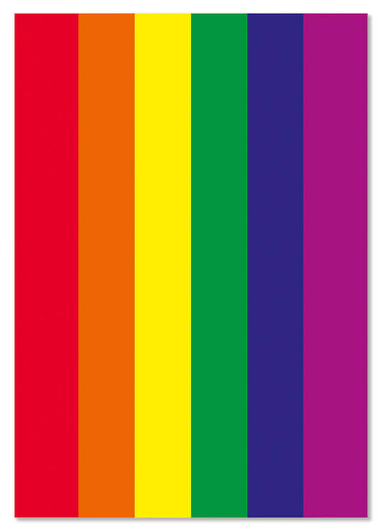 An LGBTQ+ postcard with the pattern of the rainbow pride flag.