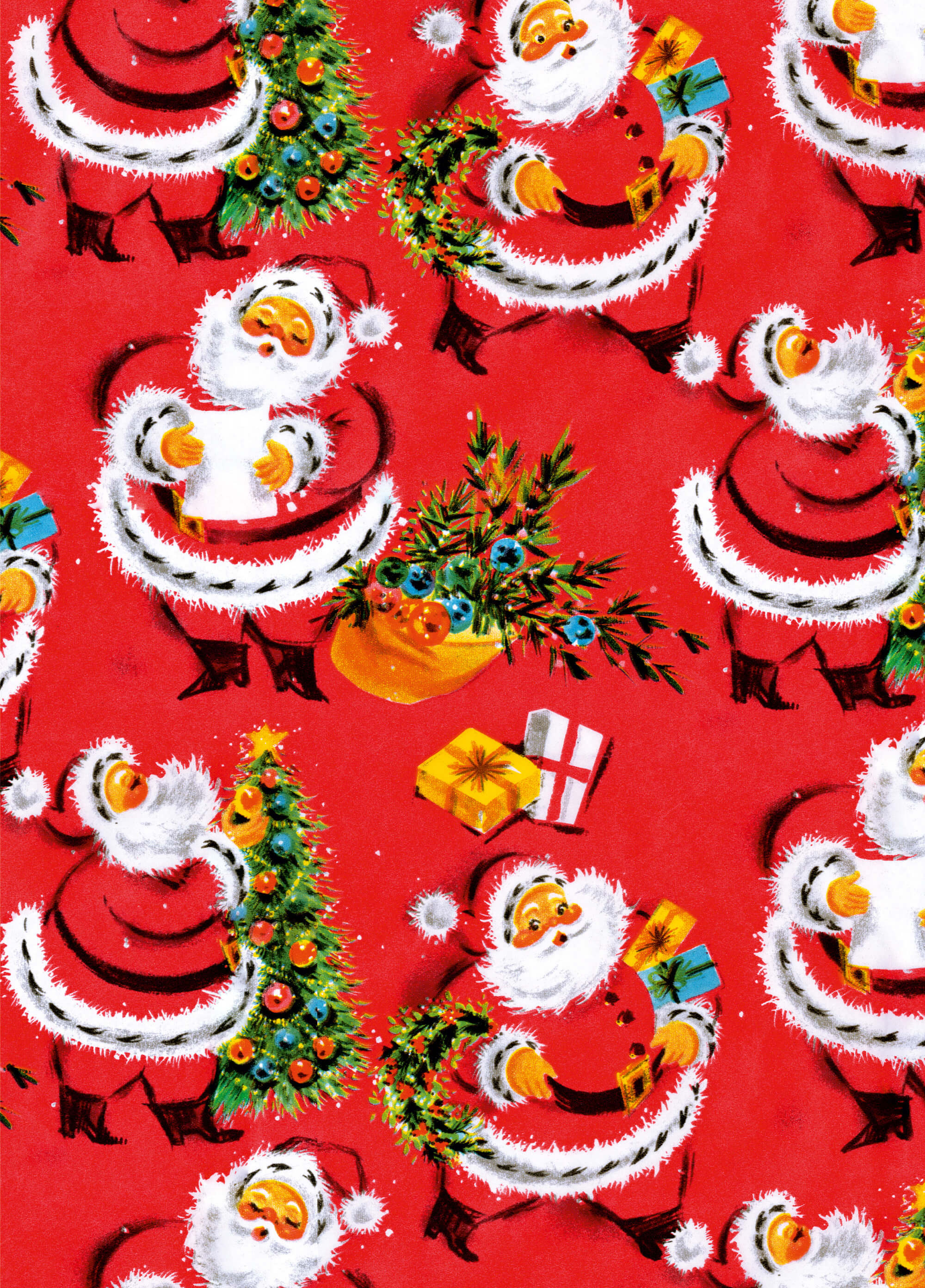 Here's some very cute and very festive wrapping paper that doesn't have any swear words on it. Just lots of cute 1950s Santa Claus