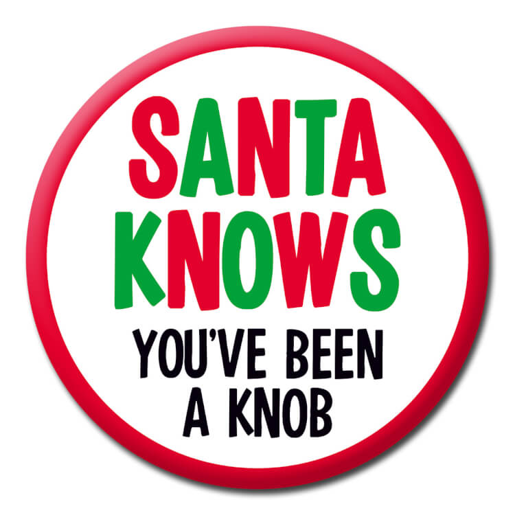 Santa knows everything, he's clever like that. You also know who is a knobhead and who isn't so wear this badge and let them know yourself in the good knowledge that Santa won't be far behind to tell them the same.