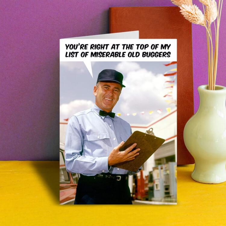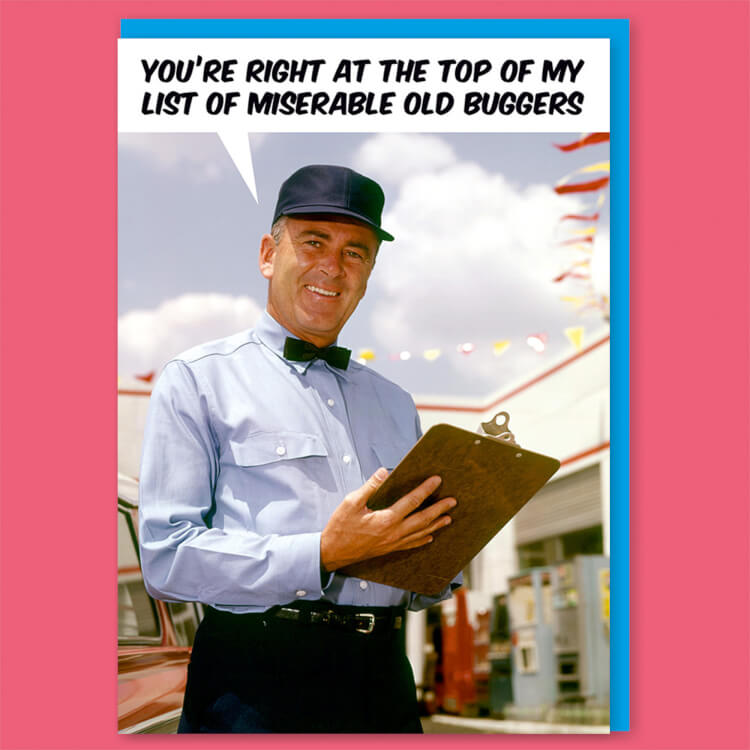 Those friends that are miserable old buggers do need remind from time what they're like. This birthday card is nice novel way and saves you telling them in person.