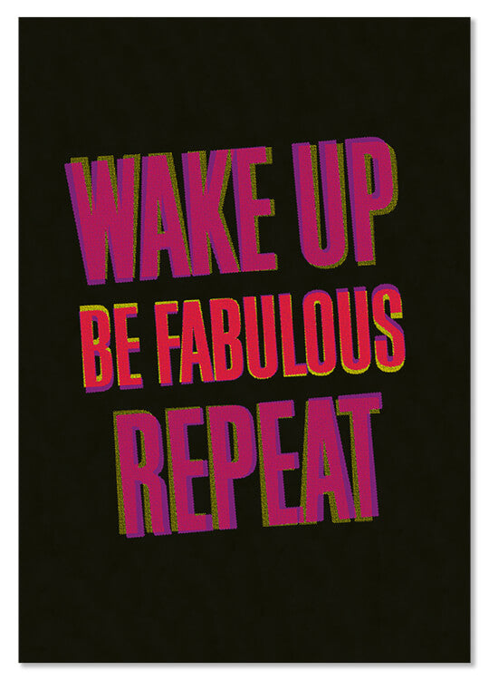 Here's some motivation for you right here - not that you really need it as you're completely fabulous already! But for those days where you might not quite feel it (most Mondays) or if you want to give some motivational fabulousness to someone else well this might just be the thing to do that. A black postcard with the bold words 'Wake Up Be Fabulous Repeat' in large pink capital letters.