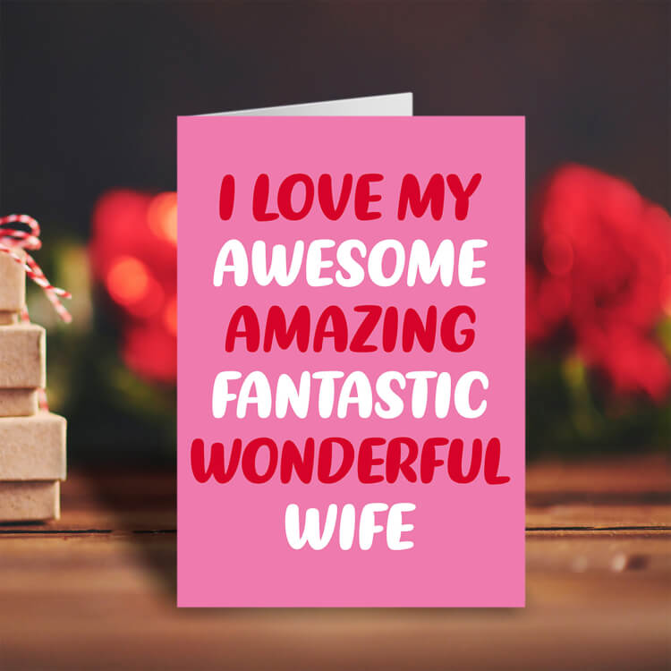 This is a perfect Valentine's Day card if your wife just happens to be awesome, amazing, fantastic and wonderful. Of course she is!